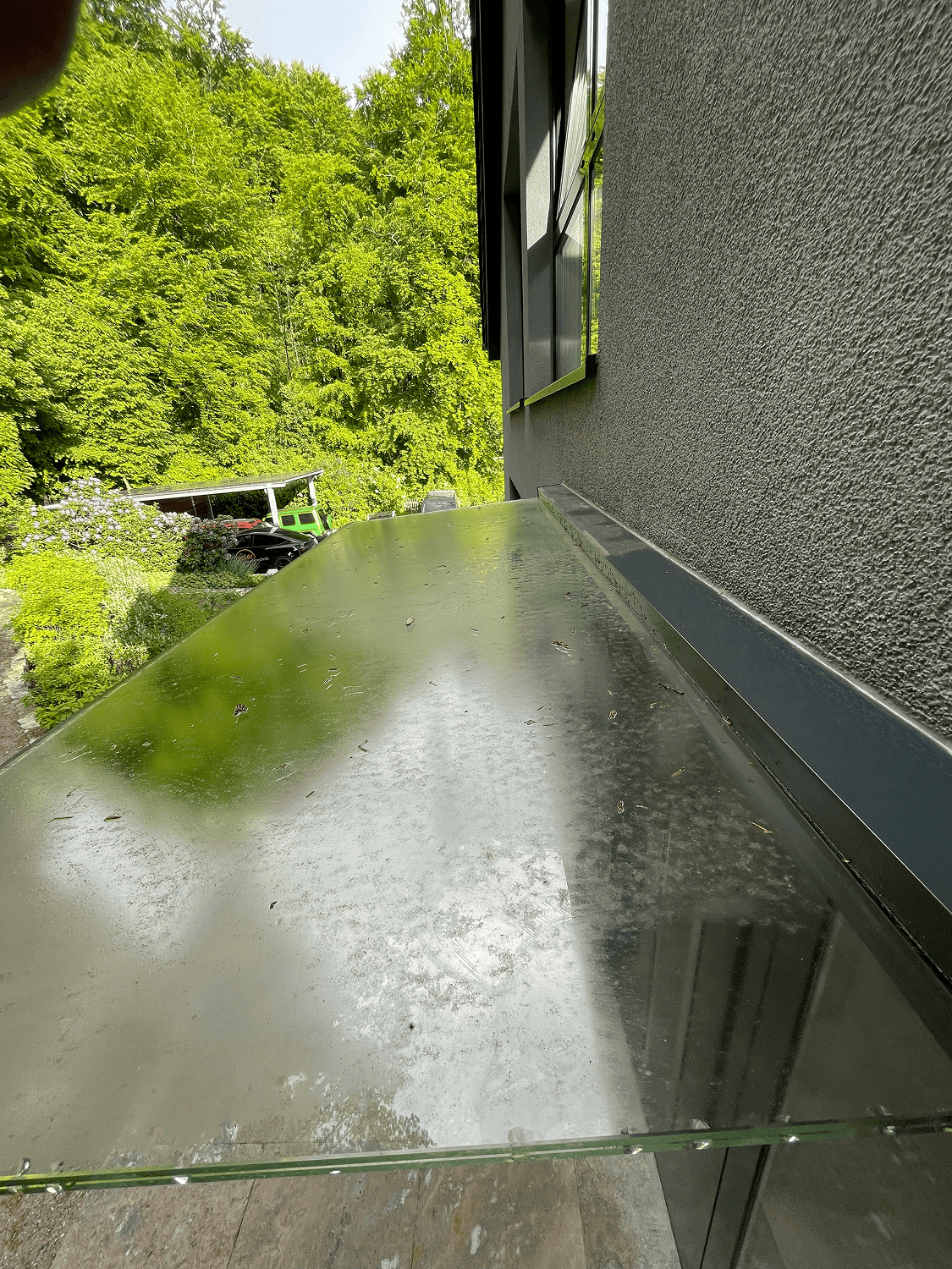 Manchmal sagen Bilder wirklich mehr als Worte. Diese Glasüberdachung war vorher komplett matt und grau – jetzt spiegelt sie wieder wie neu. Genau das liebe ich an meiner Arbeit: Wenn man am Ende richtig sieht, was man geschafft hat.